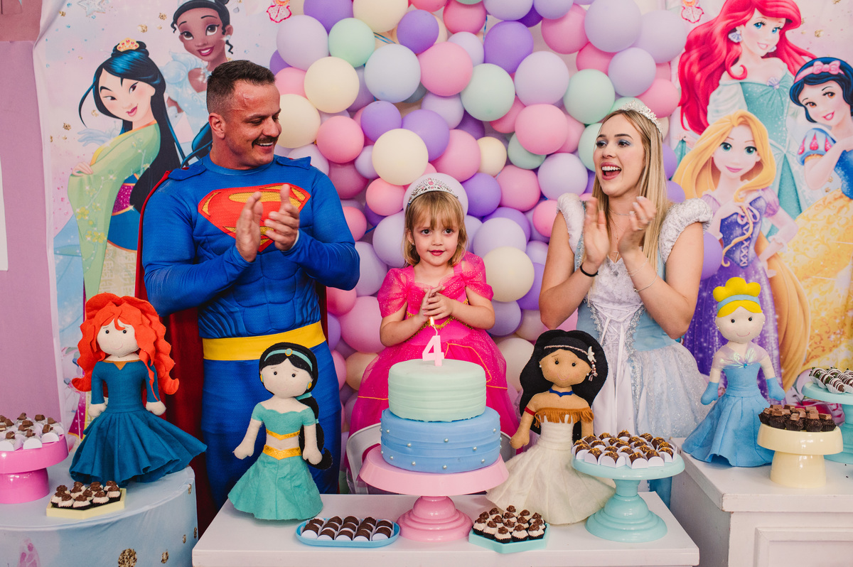 Festa de aniversário de Princesas, convidados fantasiados, fotógrafa Claudia Wallauer, aniversariante de princesa